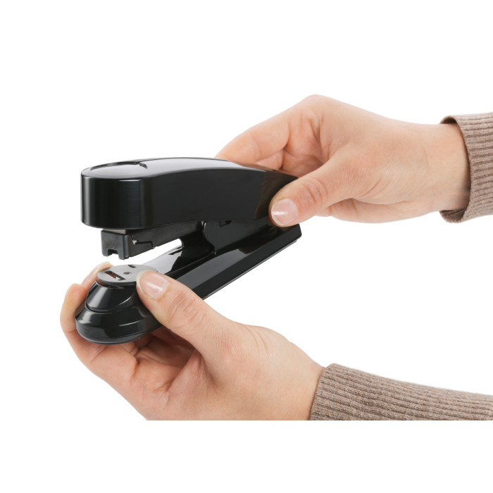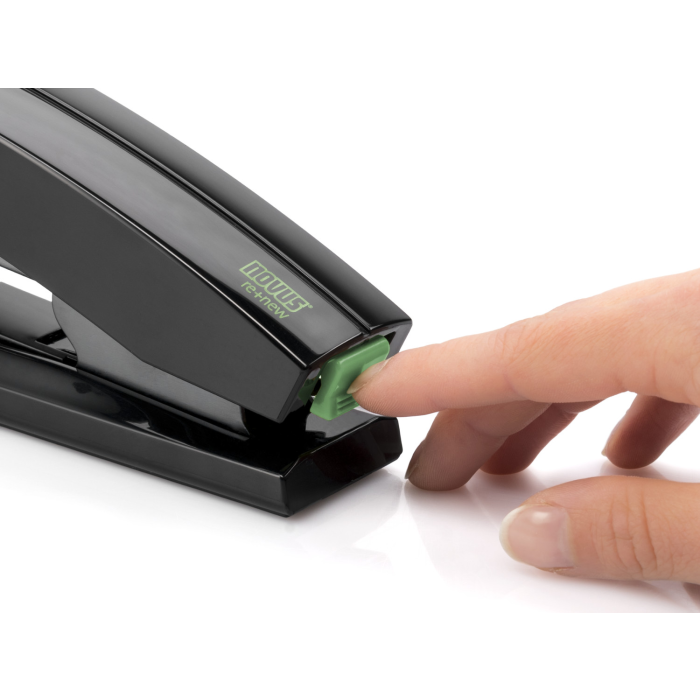 Stolová zošívačka s veľkou kapacitou súčasne zošitých listov so systémom plochého zošívania (Flat-Clinch), umožňujúca superľahké zošívanie a z kolekcie šetrnej k životnému prostrediu re+new, s lesklým plášťom z 80% recyklovaného plastu. Kovový zásobník s dvojitým vedením spiniek. Kapacita náplne 100 spiniek 24 / 6 - 8 alebo 150 spiniek 26 / 6 - 8. Hĺbka zošívania 6 cm. Hmotnosť 265 g. Záruka 25 rokov. Súčasťou balenia je 200 spiniek 24 / 6 DIN SUPER. Kapacita 50 listov. Farba čierna.