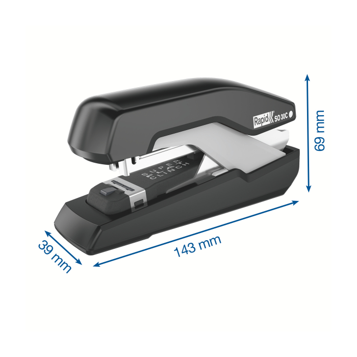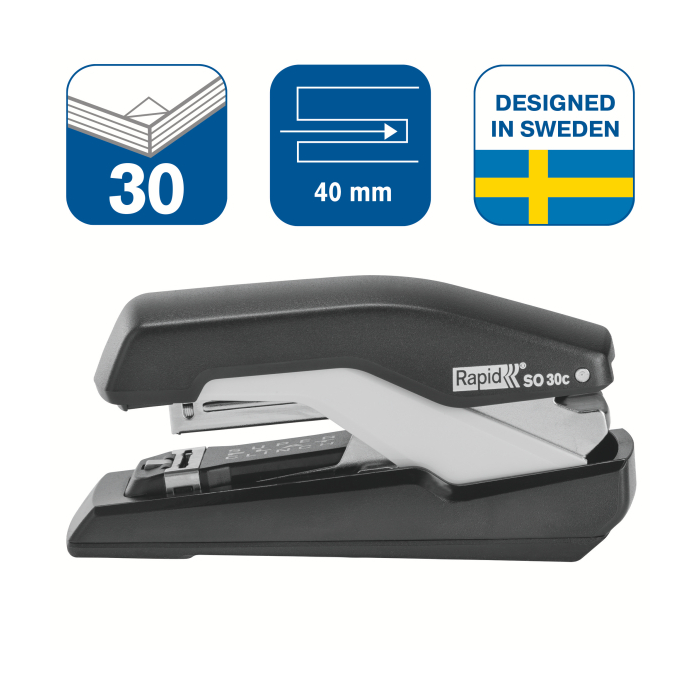 Revolučná kompaktná zošívačka, vybavená patentovanou technológiou Omnipress®, možno stlačiť kdekoľvek, aby ste ušetrili všetku námahu pri zošívaní, či už sa používa na stole alebo v ruke. Jedinečná technológia Super Flat Clinch znižuje stoh papiera o 40 %.