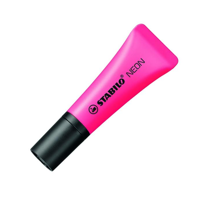 Zvýrazňovač s atramentom na vodnej báze v novom tvare tuby s mäkkou úchytovou zónou, príjemnou pri manipulácii a držaní. Použitá STABILO Anti-Dry-Out technológia zabezpečuje až 4-hodinovú ochranu pred vyschnutím atramentu pri nepoužívaní vrchnáka. Zrezaný hrot, šírka stopy 2 - 5 mm. Farba neónová ružová. Väčšie balenie 10 ks.